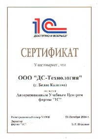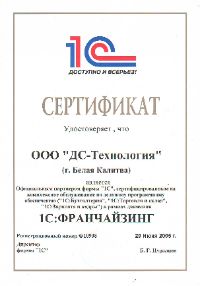 Сертифицированный партнер 1С-Франчайзи с 2003 года